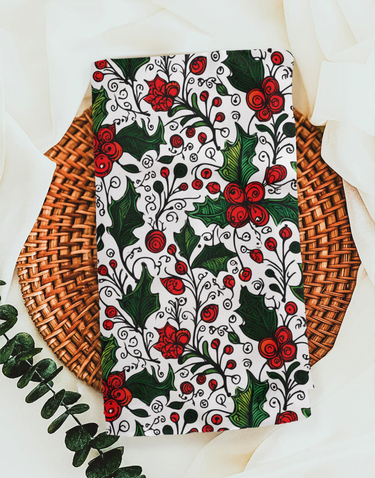 Elevate your holiday table with this charming Set of 4 Holly Berry Cloth Napkins, the essential accent for Christmas table decor and seasonal gatherings. Featuring a whimsical, beautiful pattern of classic holly leaves and vibrant red winter berries, these napkins instantly bring a cozy, festive elegance to any meal. Crafted from soft, durable, and lightweight polyester broadcloth, each extra-large napkin is finished with polished hemmed edges for longevity. This set is perfect for your Christmas dinner, family celebrations, or as a thoughtful and high-quality hostess gift.