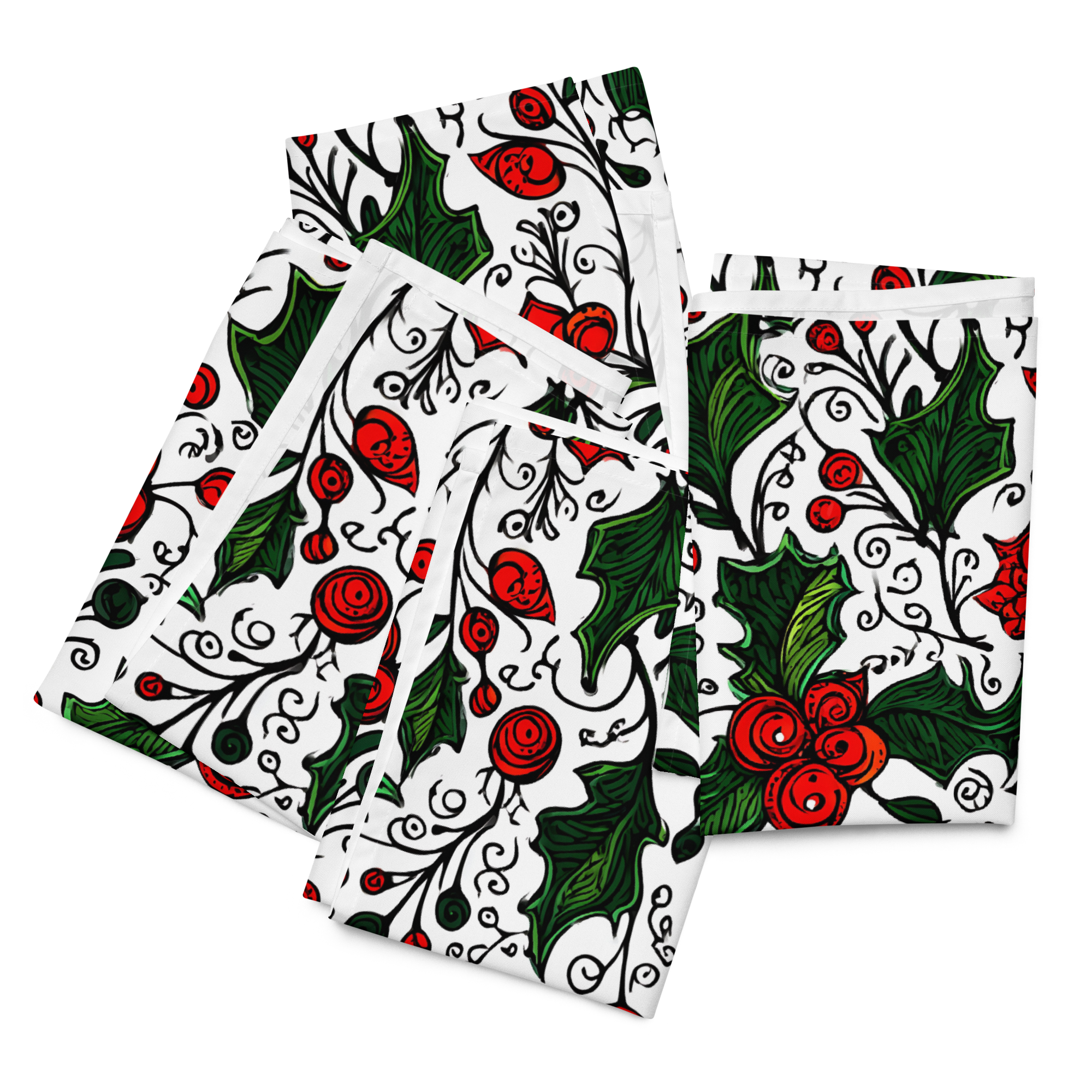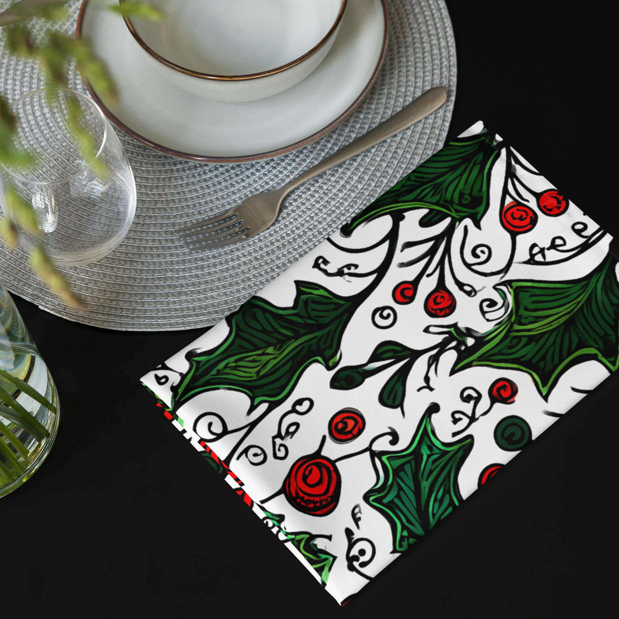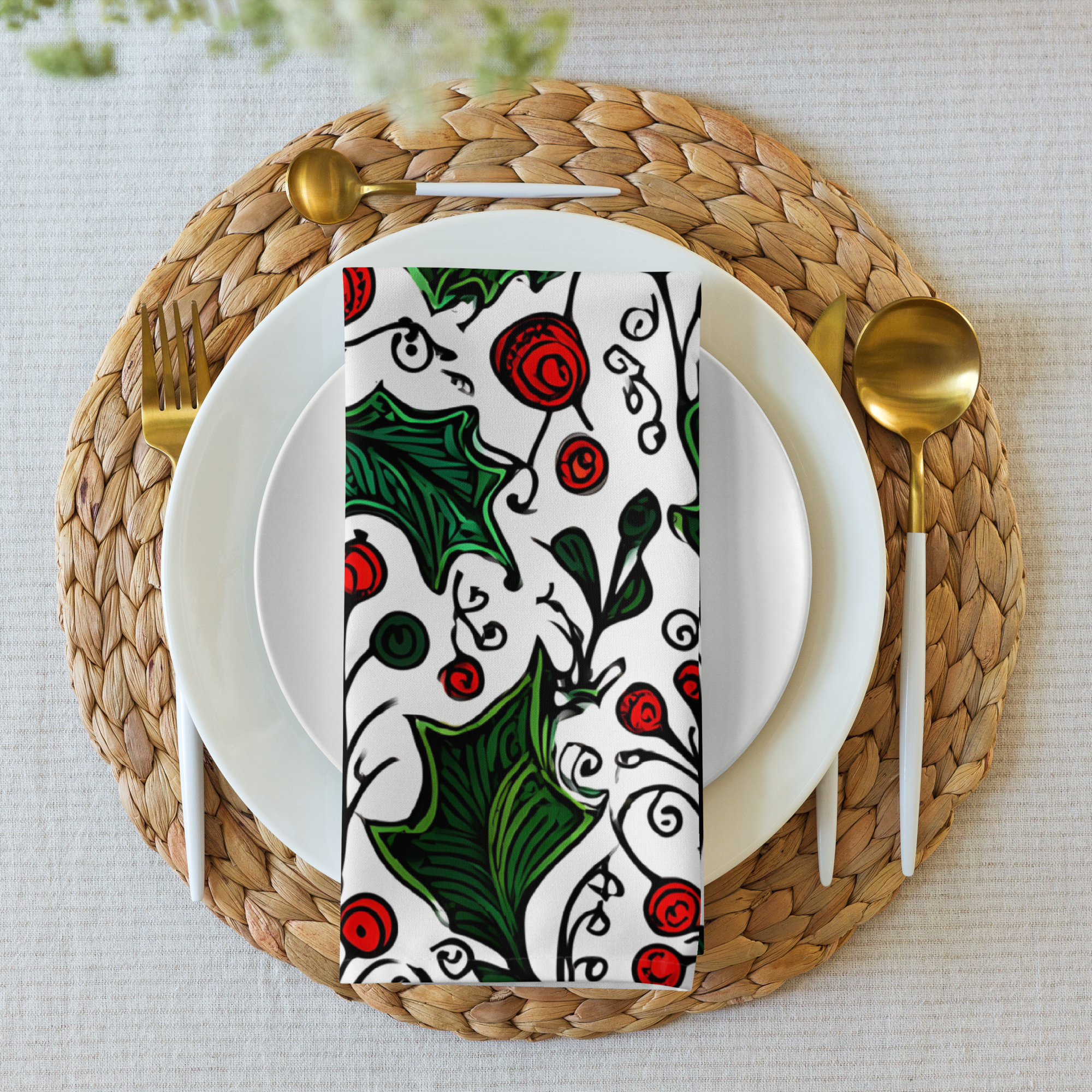 Whimsical Christmas Holly Cloth Napkins – Set of 4 Table Napkins