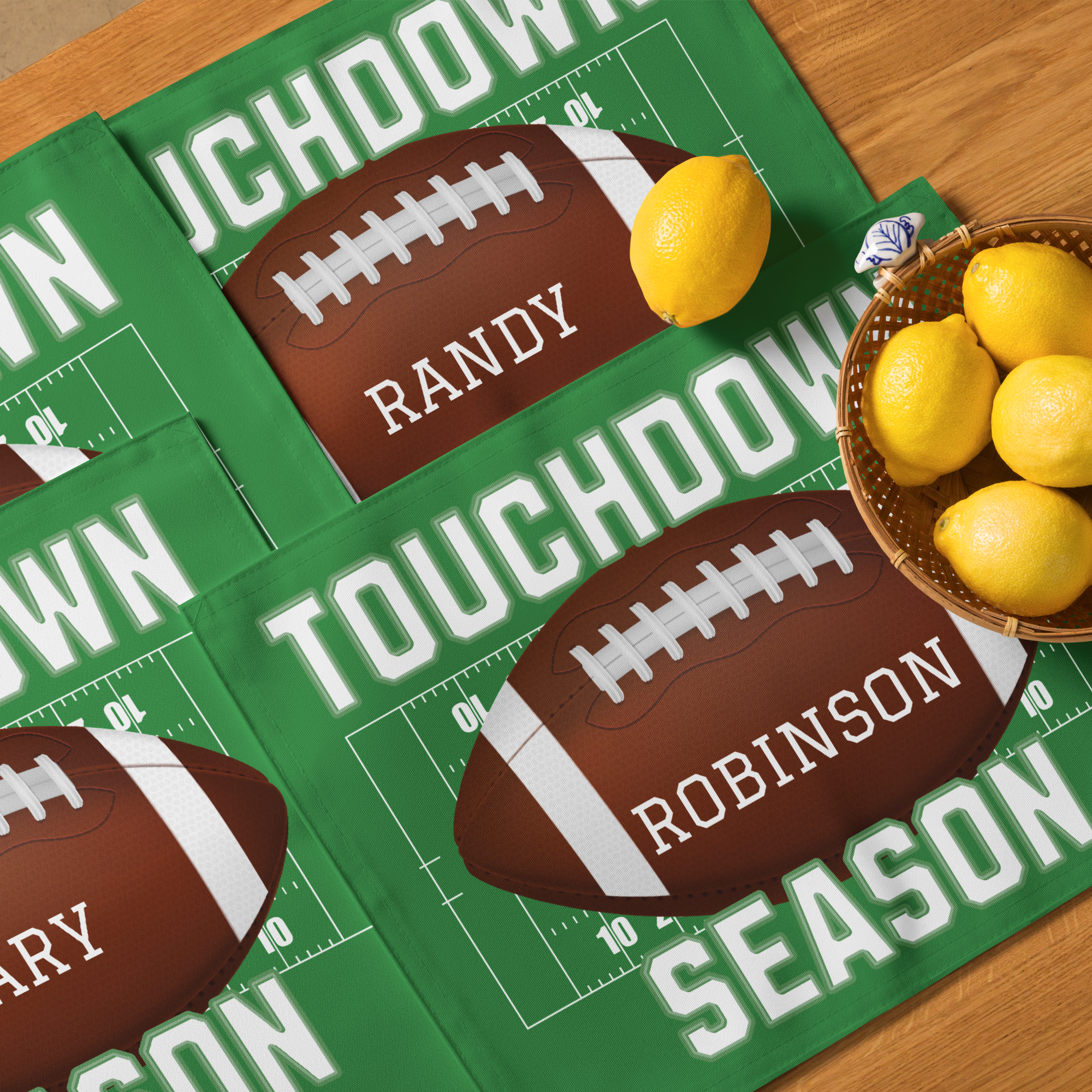 🏈 Up to Four Different Names: Provide a separate name for each placemat (e.g., Michael, Mary, Tony, Sarah)."