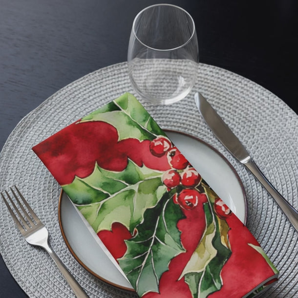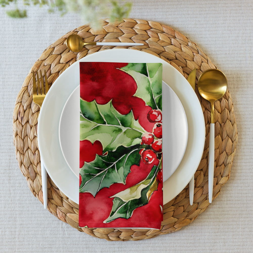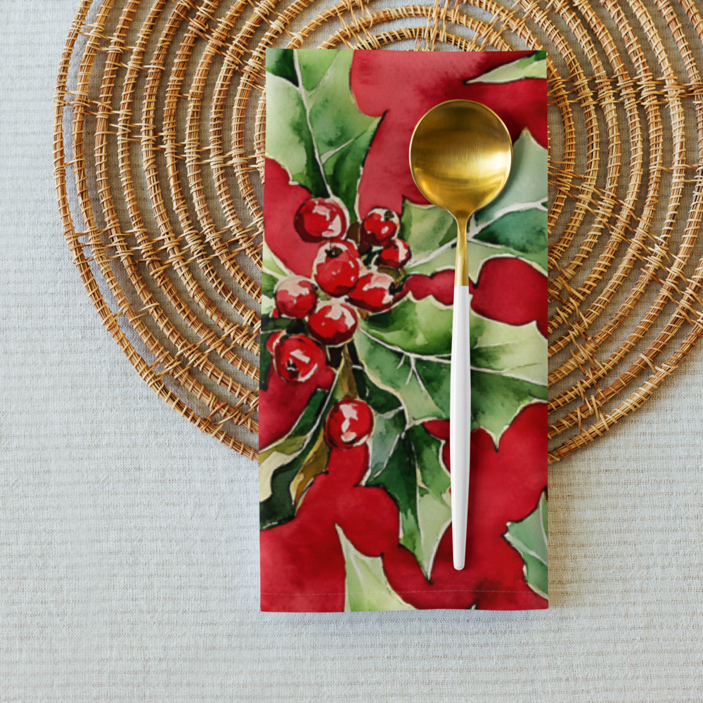 Watercolor Holly Cloth Napkins - Set of 4 Table Napkins