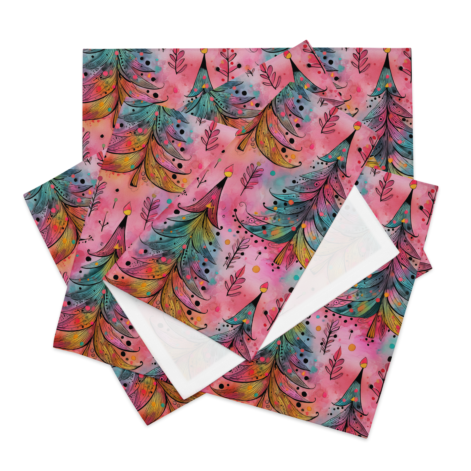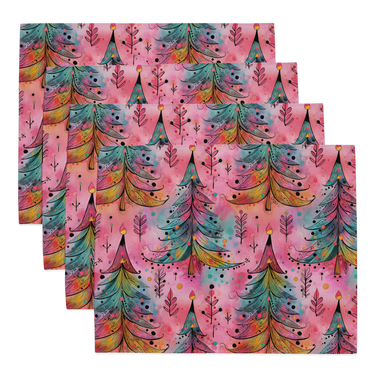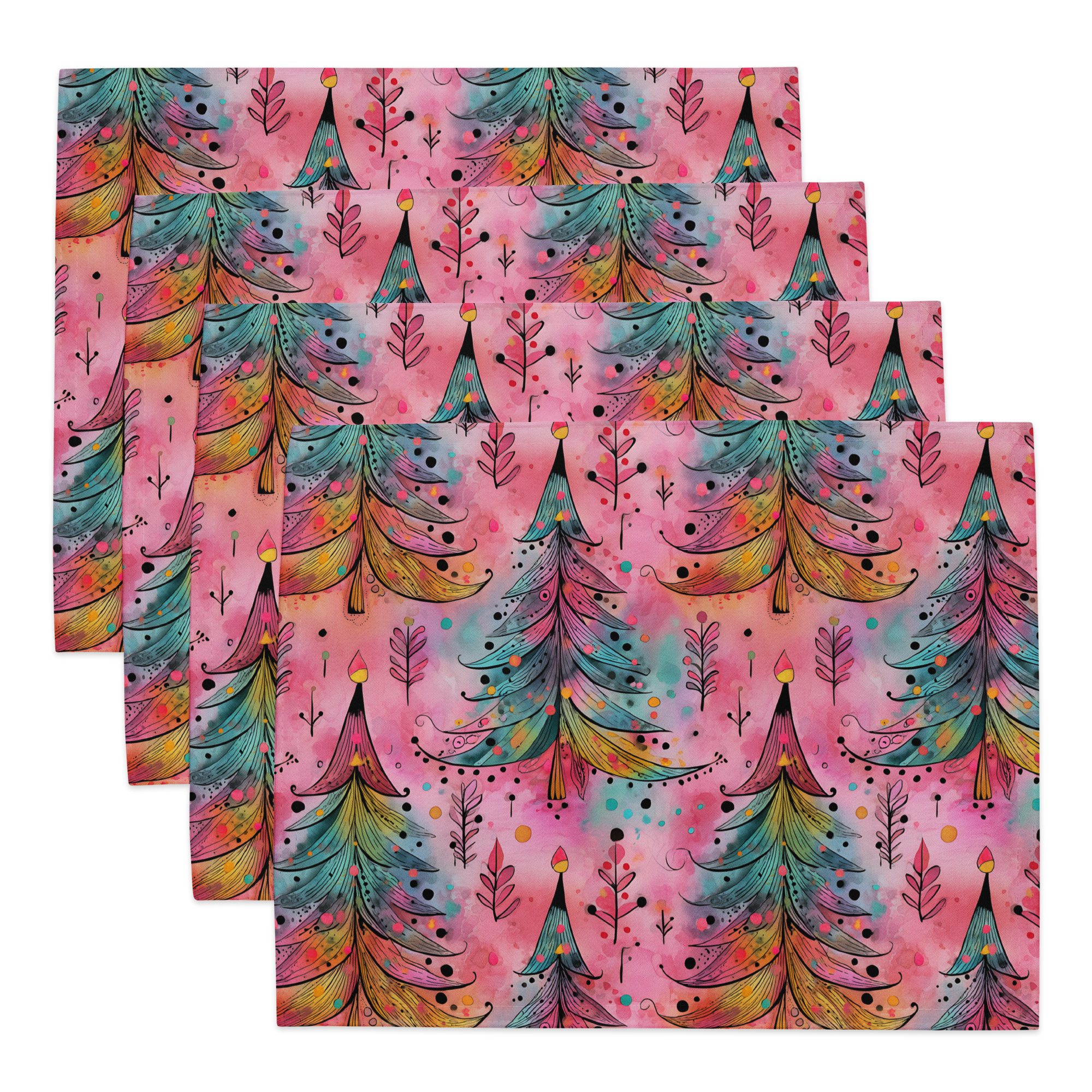 Pink Christmas Tree Tablemat - 4 Piece Placemat Set