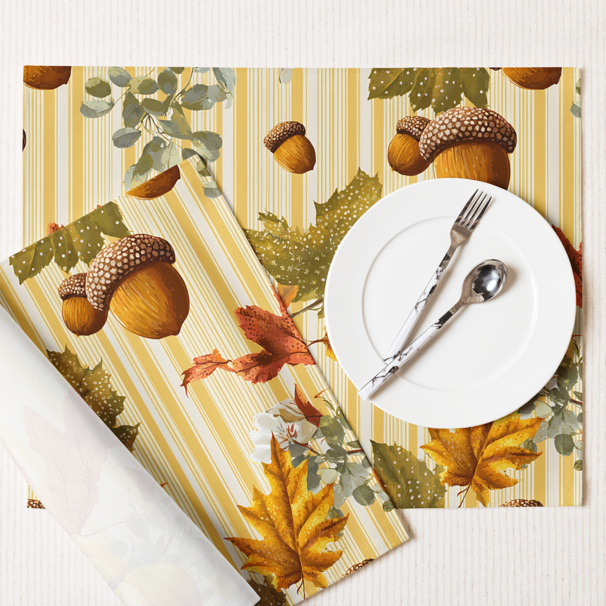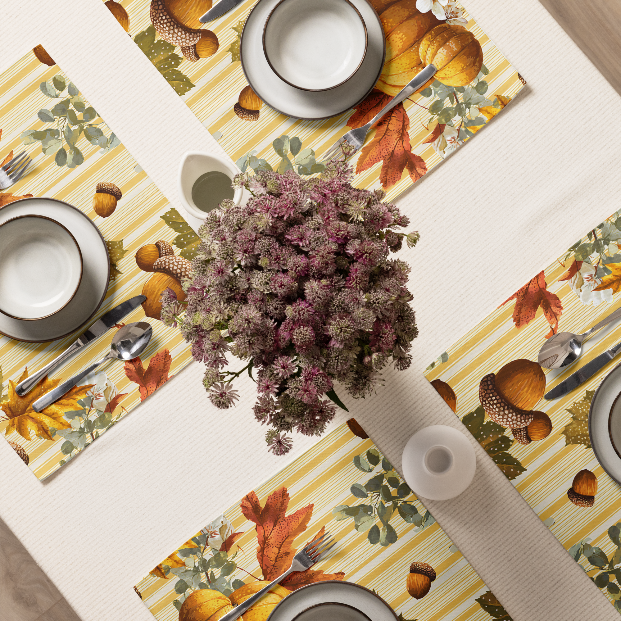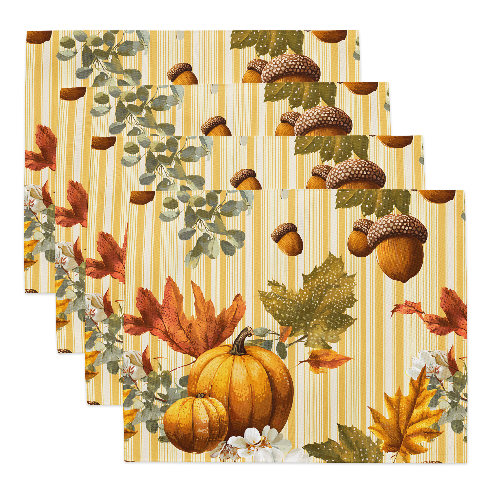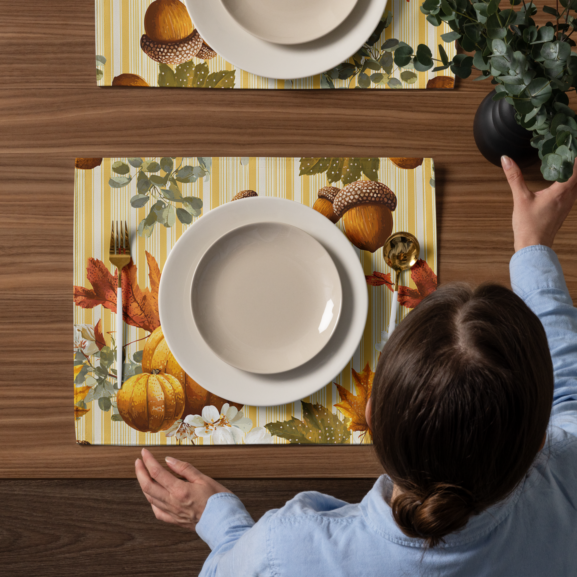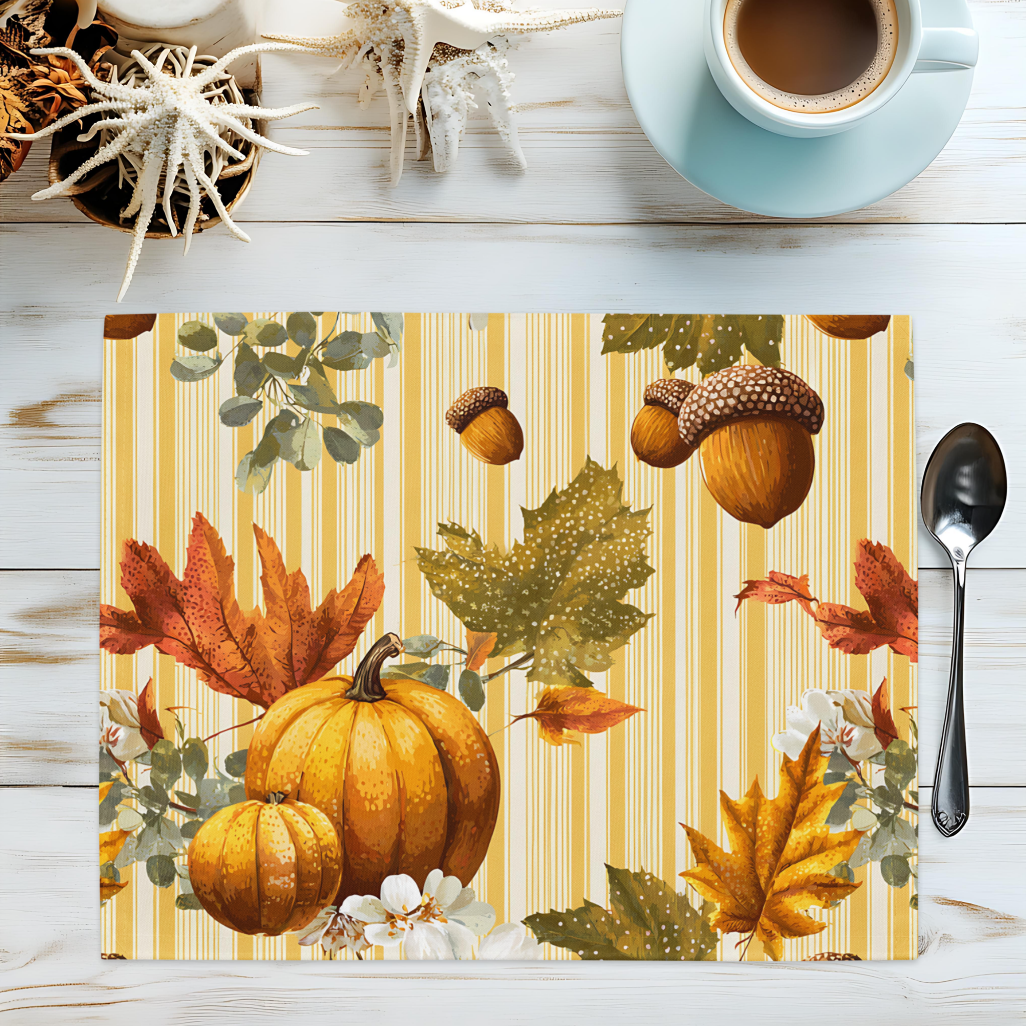 Fall Harvest Pumpkin & Acorn Placemats (Set of 4) | Thanksgiving Table Decor