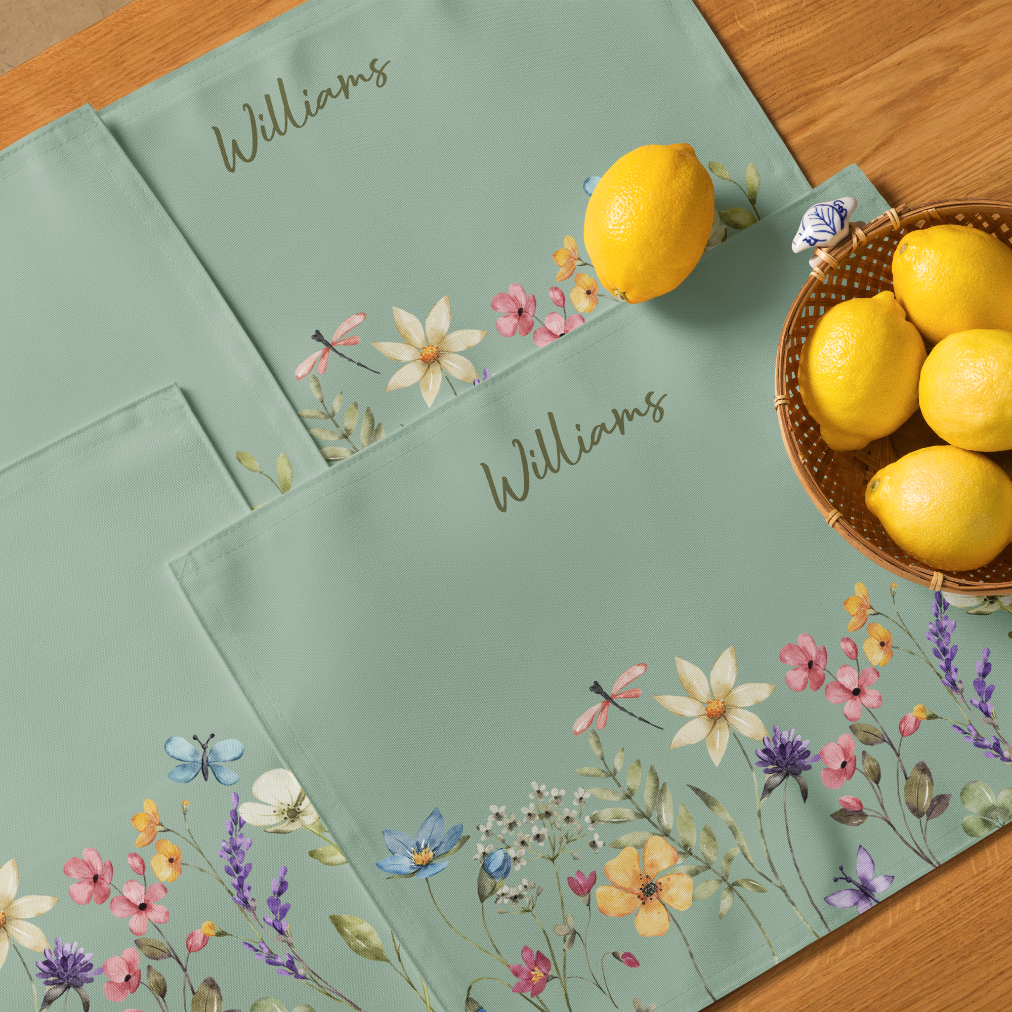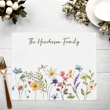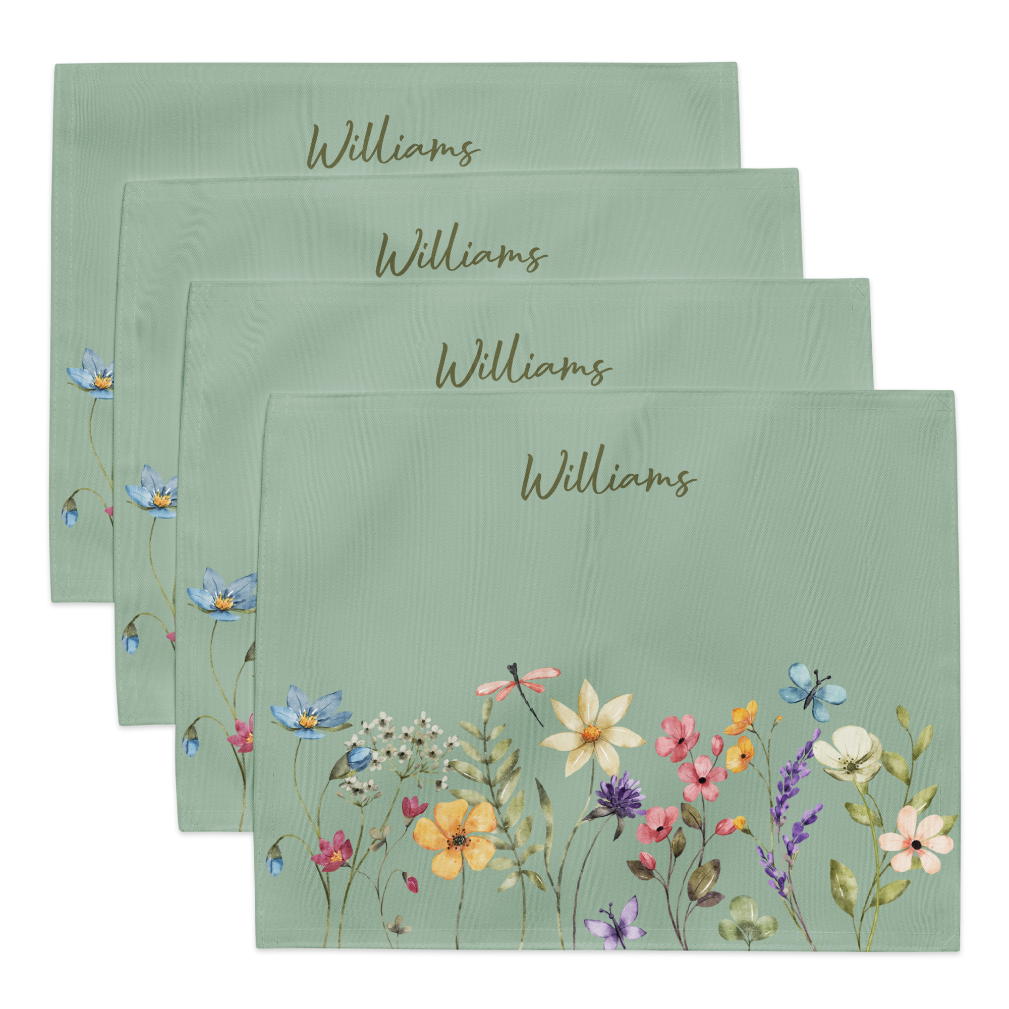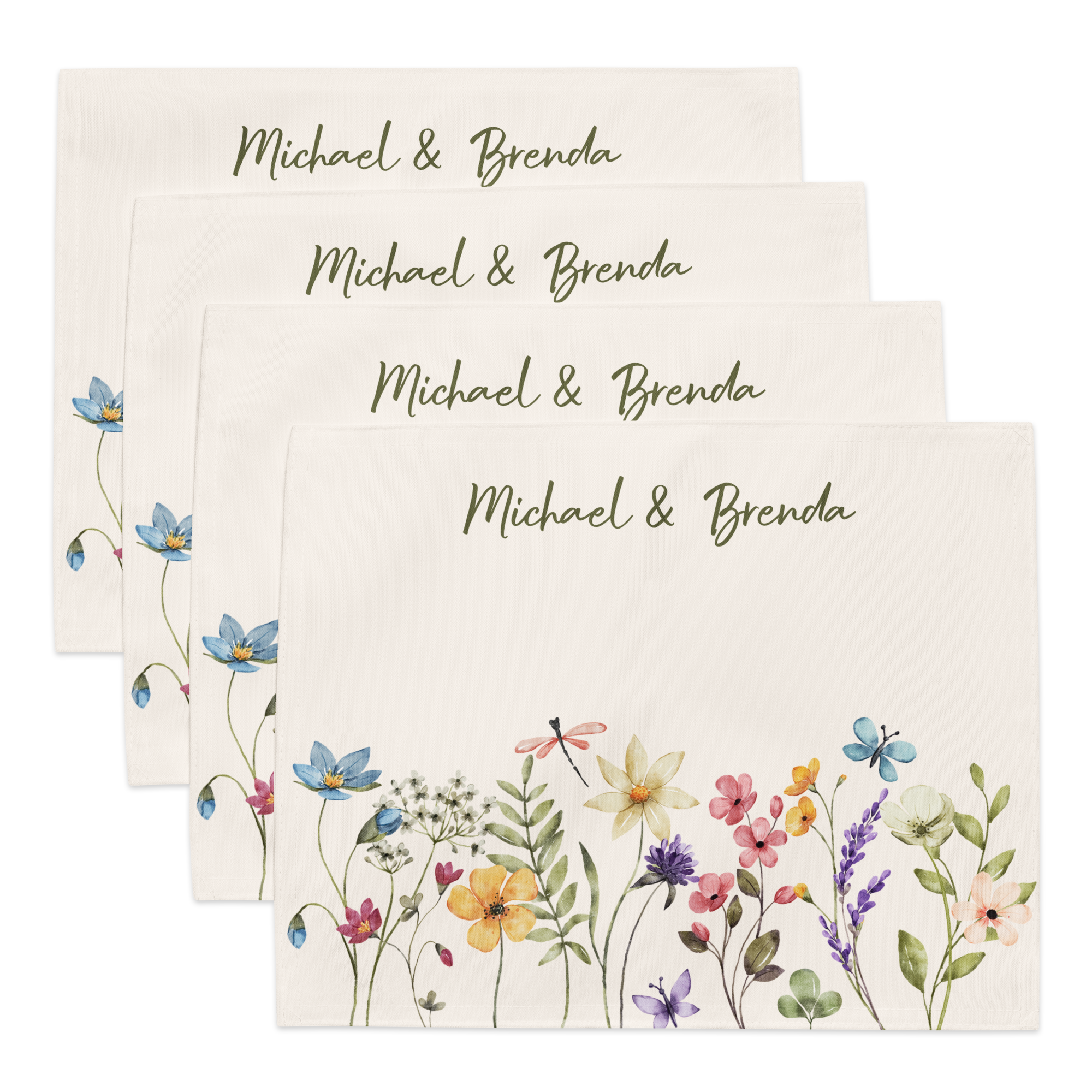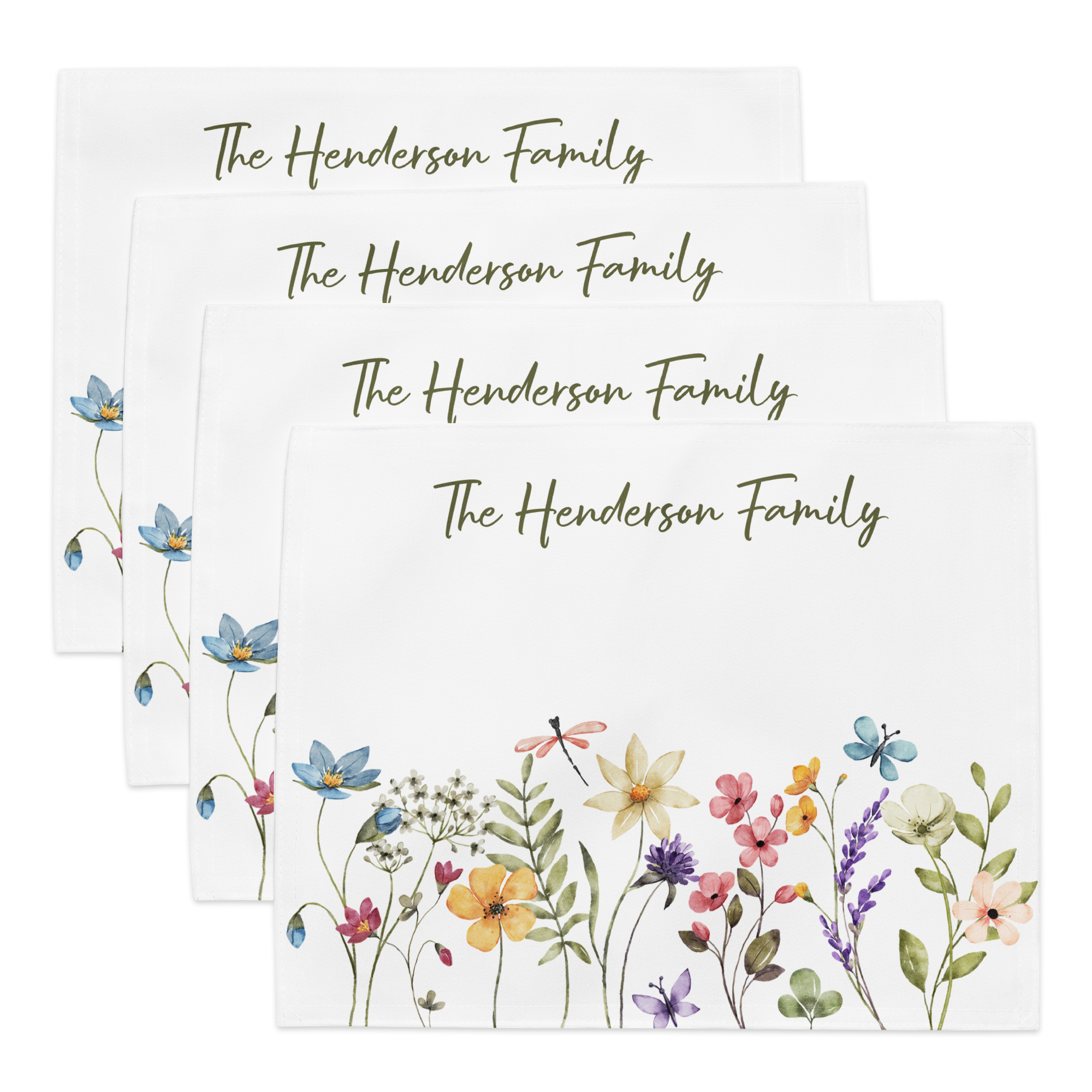 Personalized Wildflower Placemat (Set of 4), Custom Name Farmhouse Floral Table Linens