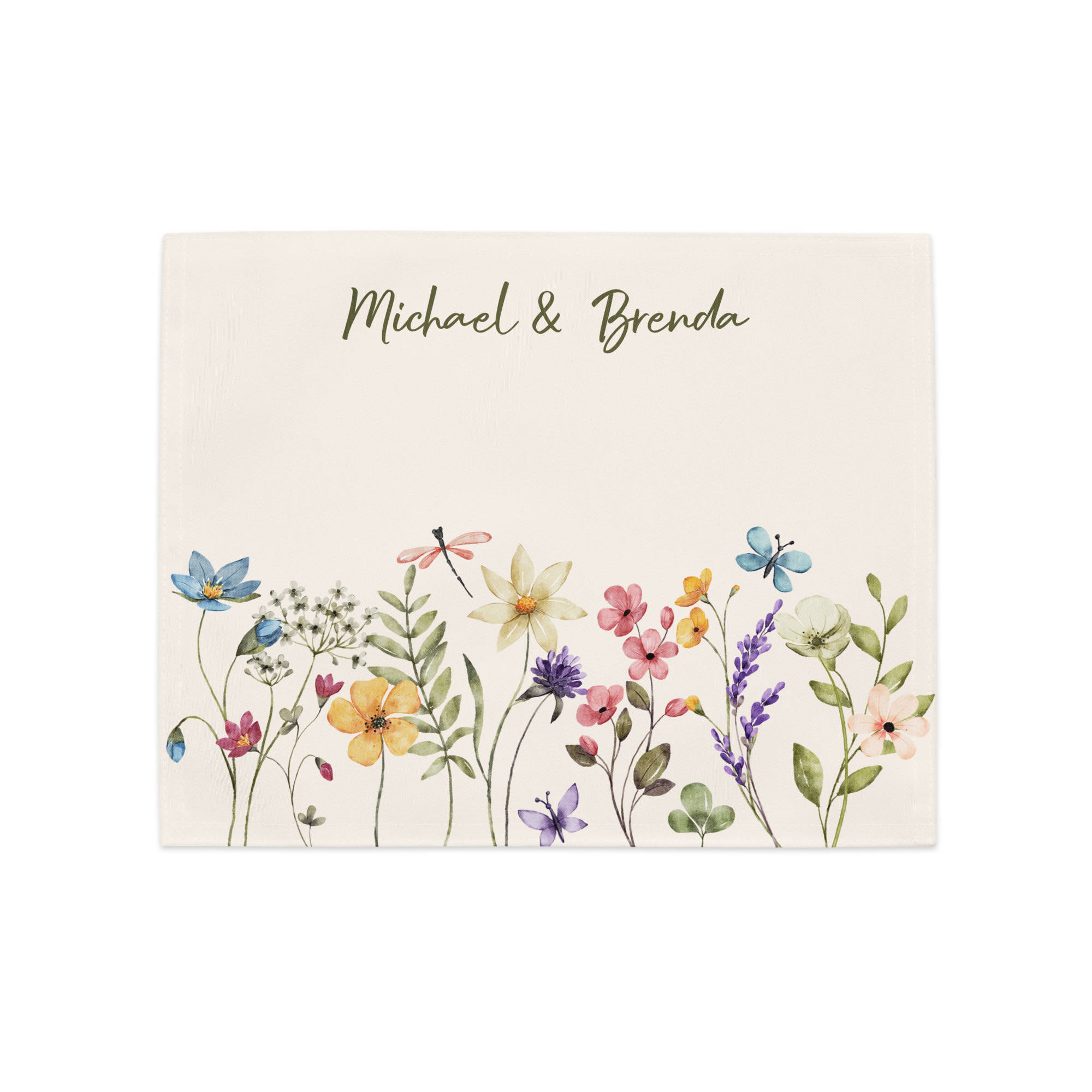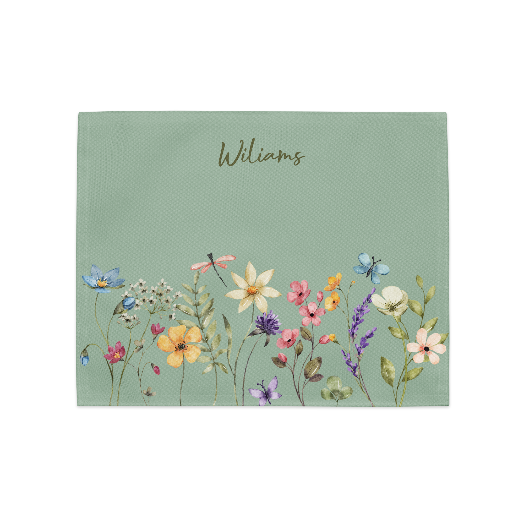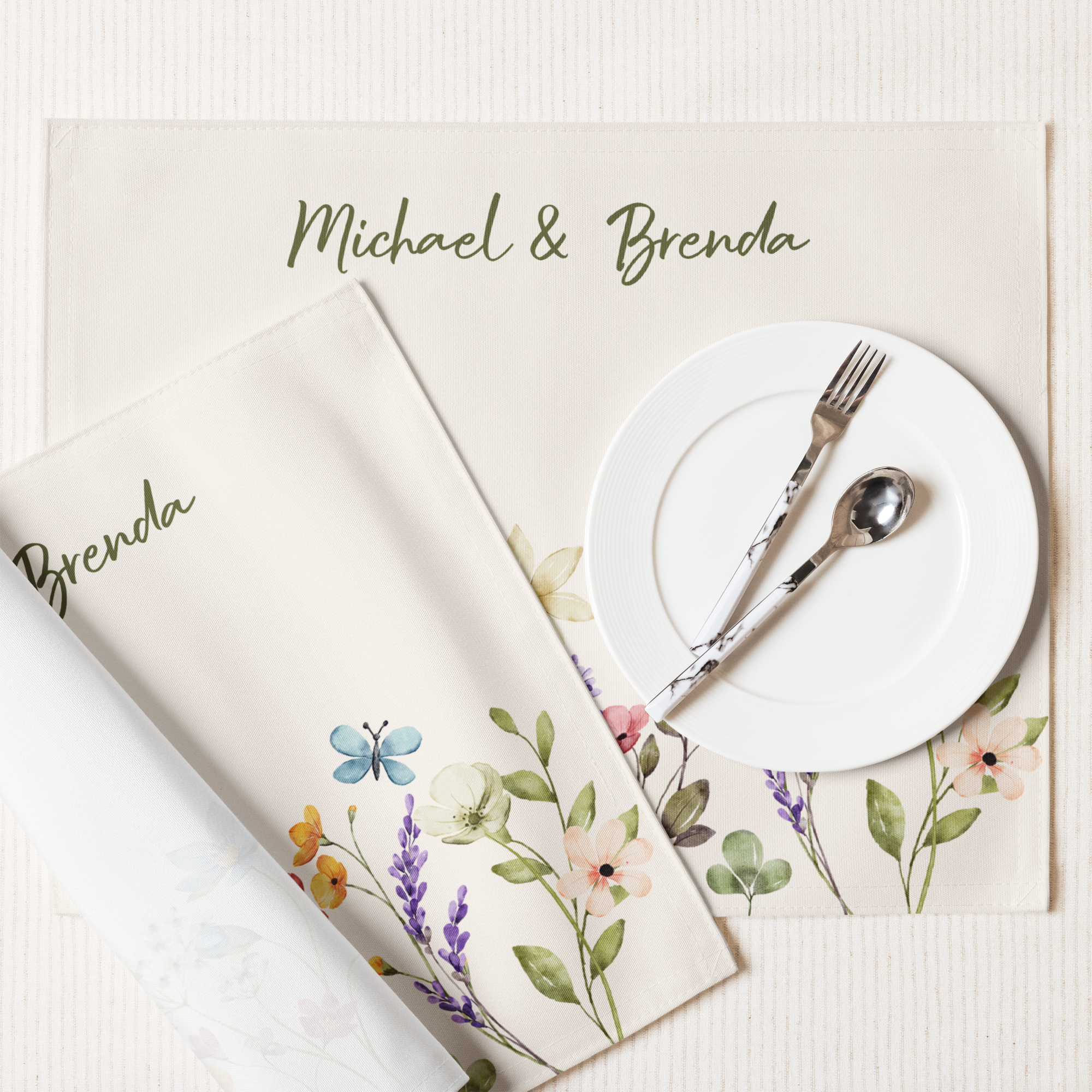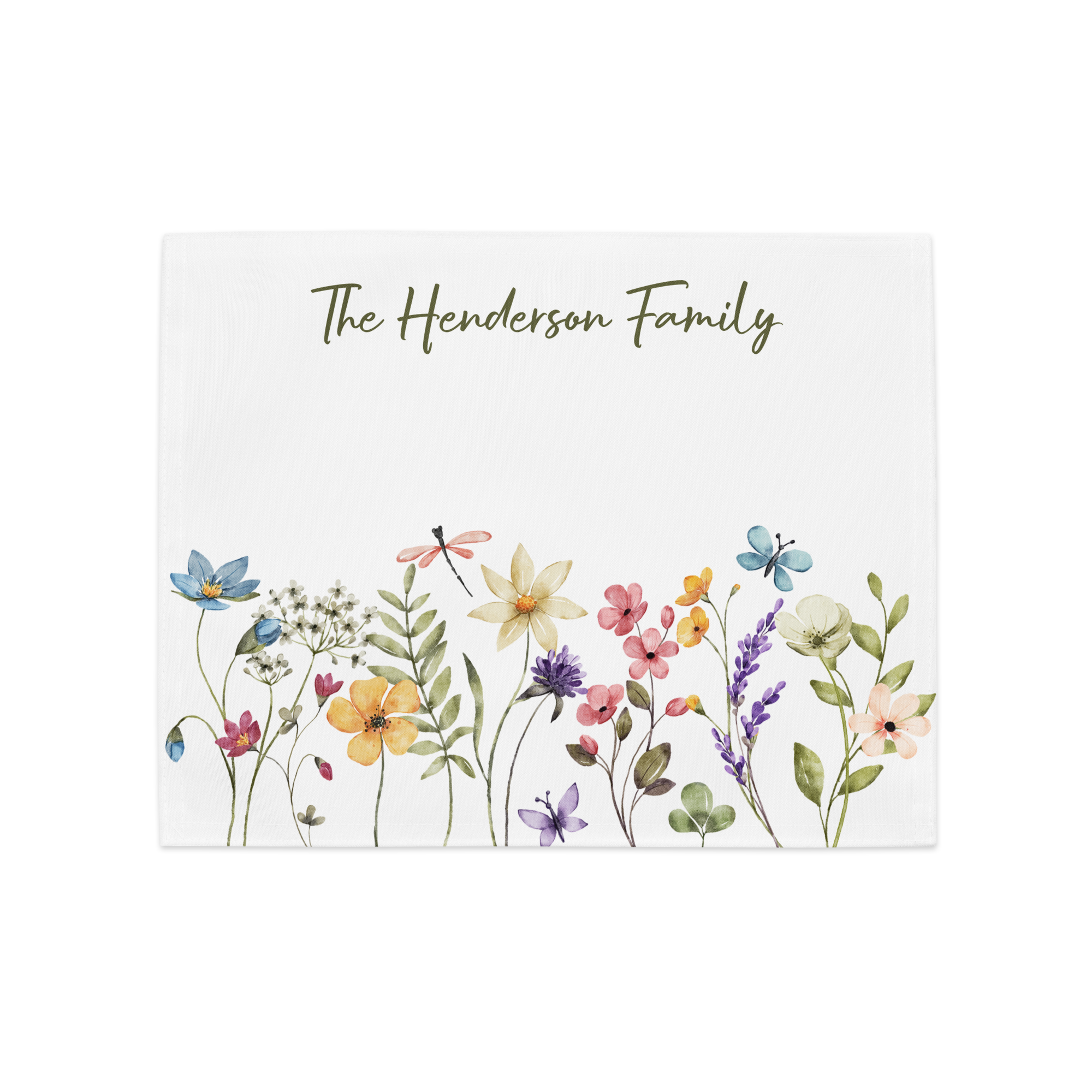 Personalized Wildflower Placemat (Set of 4), Custom Name Farmhouse Floral Table Linens