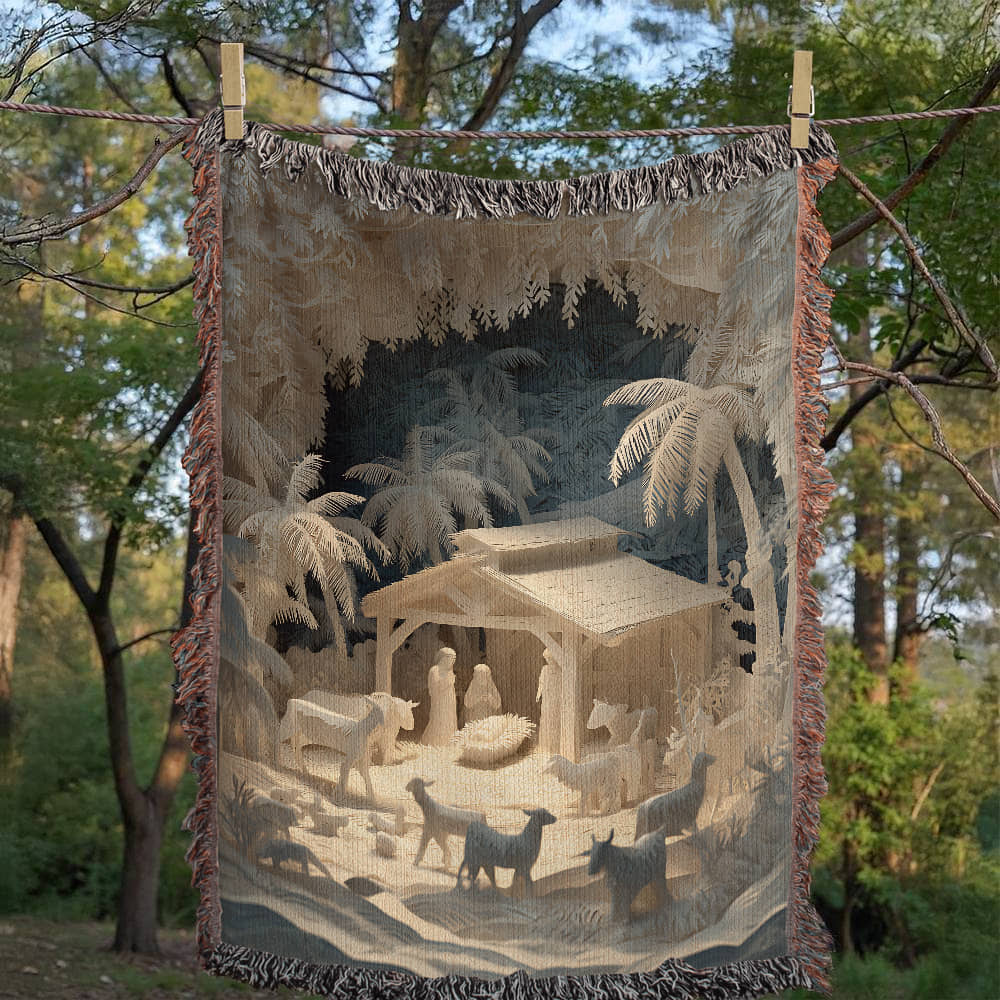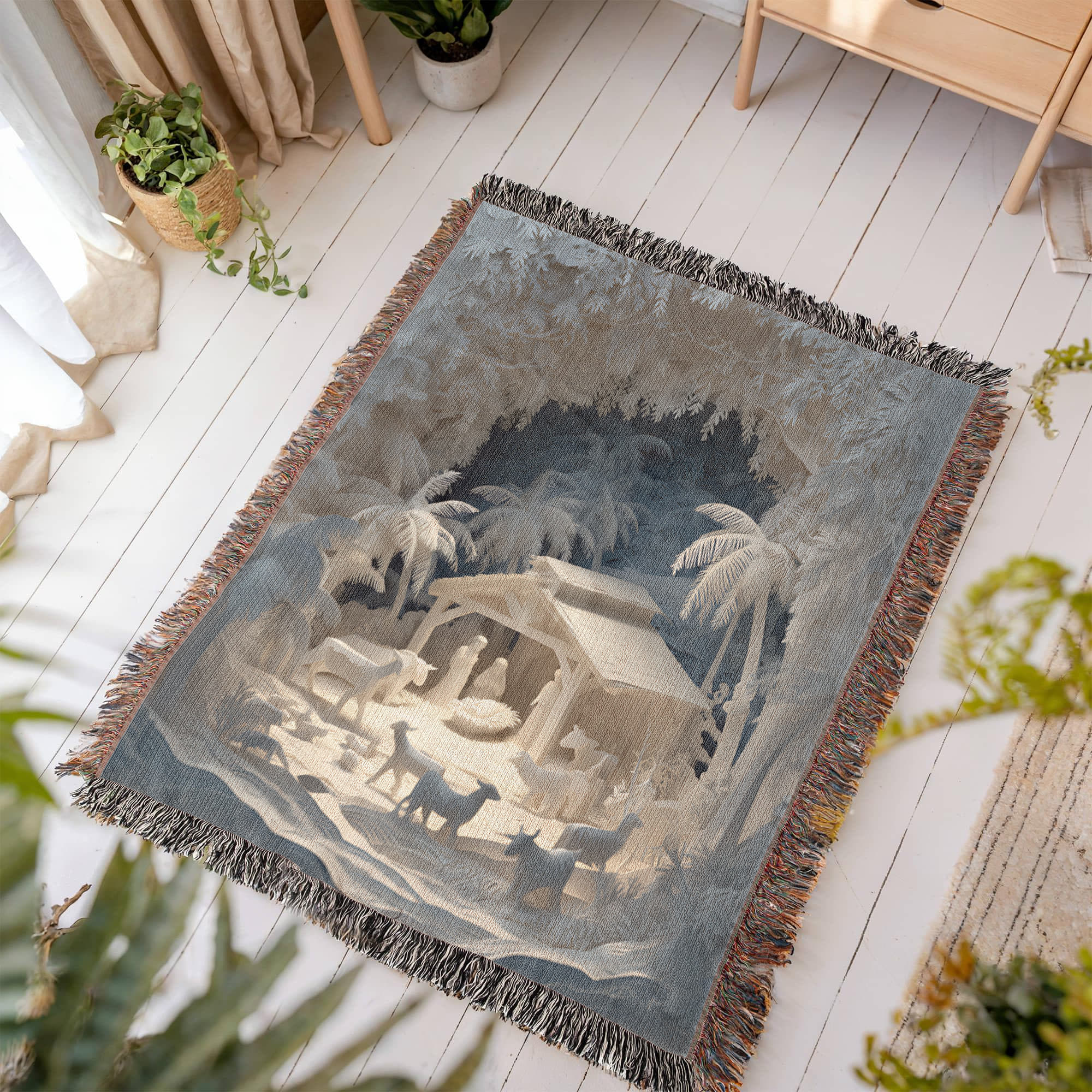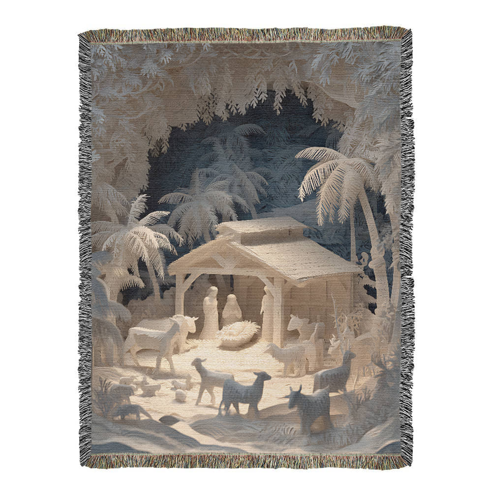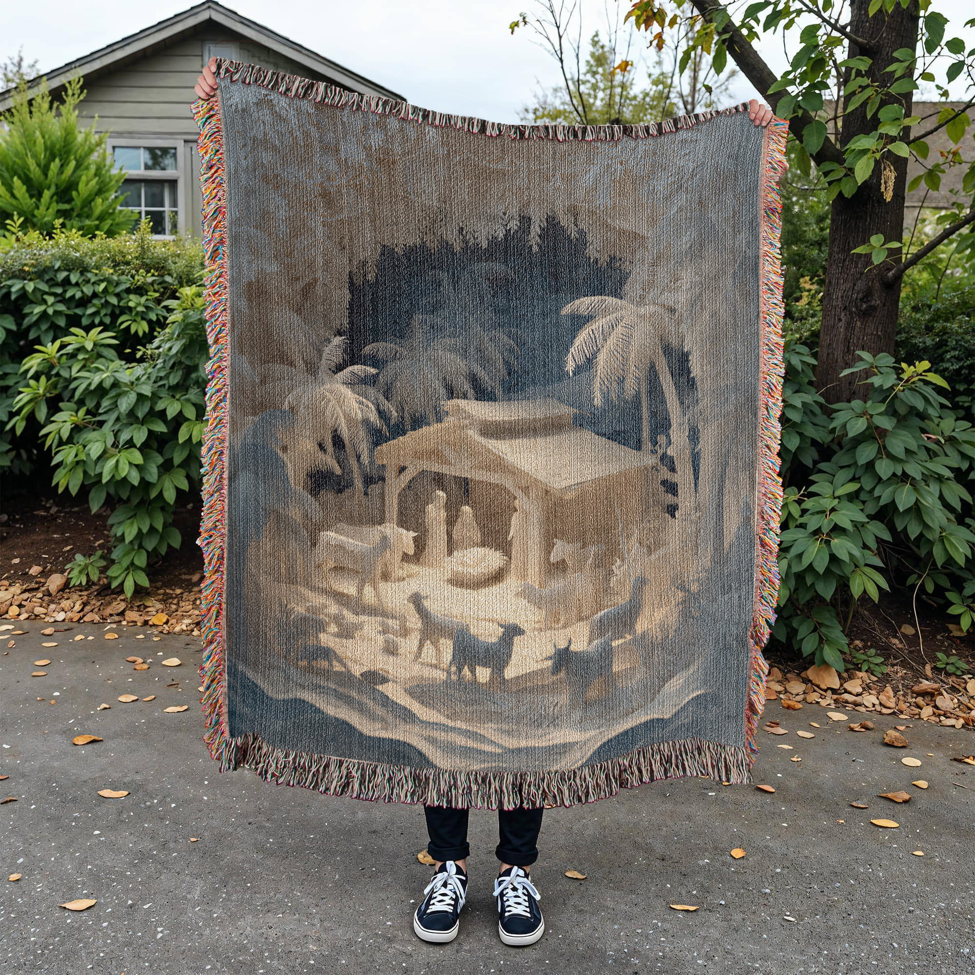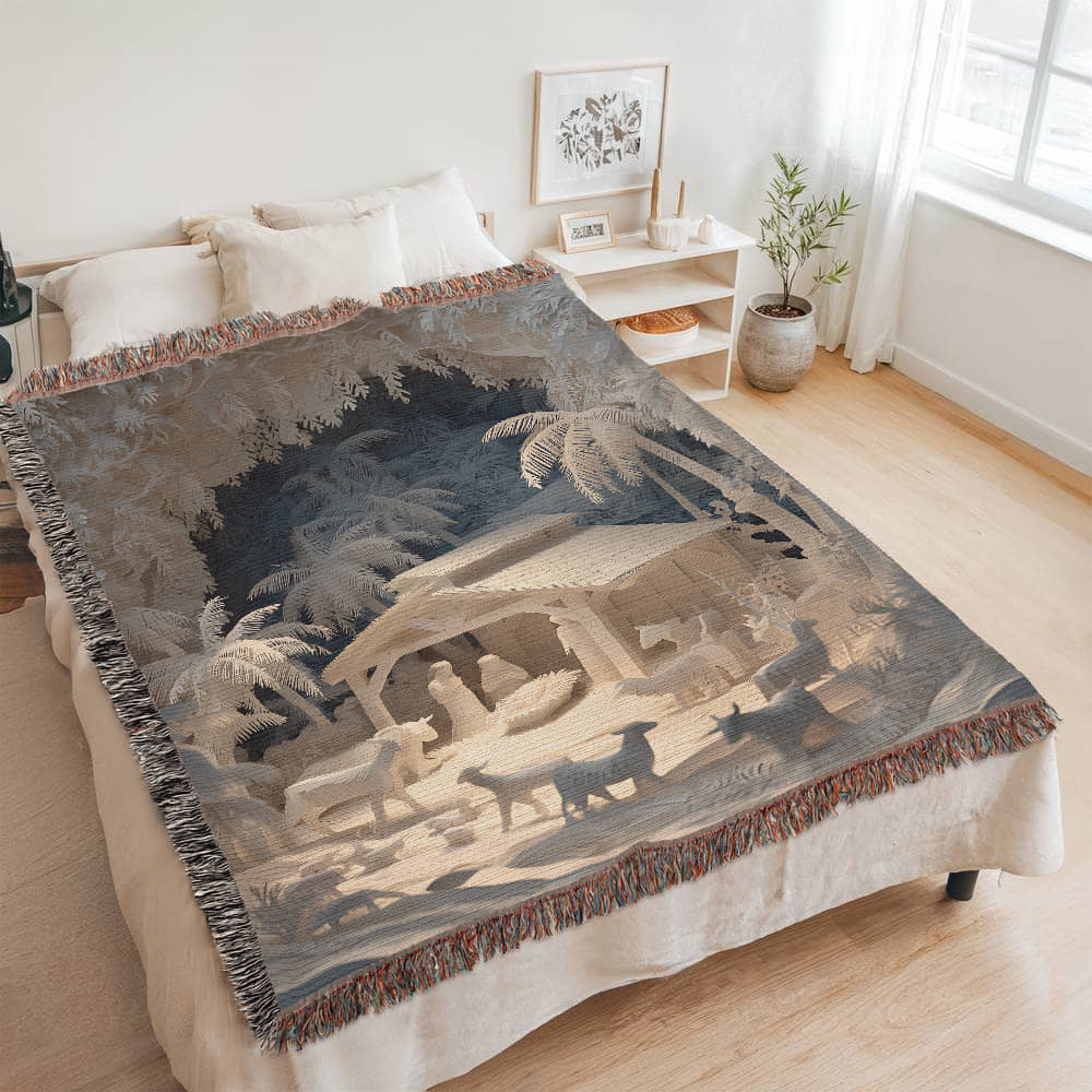 Wrap yourself in the true spirit of the season with this Christmas Nativity Woven Blanket, beautifully crafted to celebrate the meaning of Christmas. Featuring a timeless depiction of the Nativity scene, this elegant cotton throw adds warmth, faith, and festive charm to your home. Woven from 100% soft cotton with intricate detail and fringed edges, it offers a cozy, heirloom-quality feel perfect for draping over your sofa, displaying as wall art, or gifting to loved ones. Celebrate tradition and comfort with this holiday woven throw blanket that blends artistry and purpose into one meaningful keepsake.